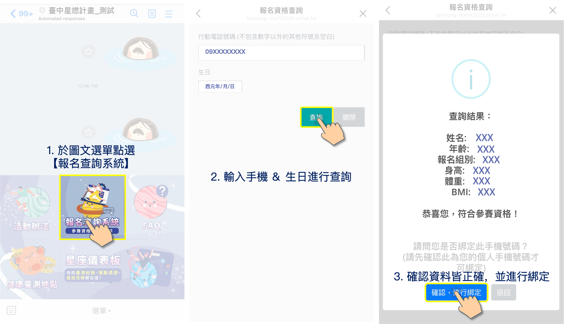 3.於官方 Line 上完成資料綁定,即為報名成功。
